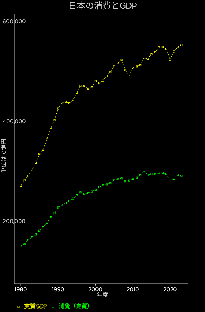 日本の消費とGDPをプロットした物です。