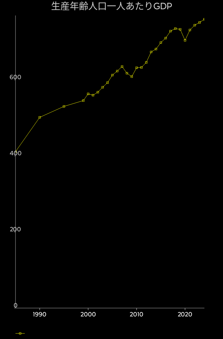 人口動態を所与とする場合、働いている人がどれくらい「うまく働いているか」とか、会社や社会がどれくらいうまく物を生み出しているかを評価するなら、労働者一人あたりか、生産年齢人口あたりのGDPを見るべきです。